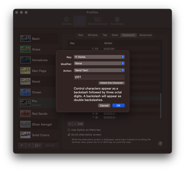 MacOS Sonoma, Home and End Keys in Terminal and ViM